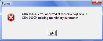 | Re: ora-00604 and ora-01009 [message #353299 is a reply to message #331784] |