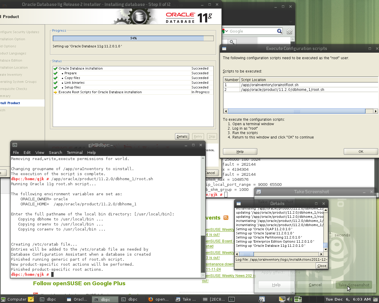 Installer prompts you at 94% completion to run the following 2 scripts as root: